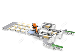2、對稱和緊湊的結(jié)構(gòu)設(shè)計,適用于現(xiàn)有生產(chǎn)場地的狹小空間,與已有的生產(chǎn)線集成碼垛。
