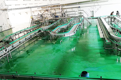1、鏈板輸送線的輸送面平坦光滑,摩擦力小,物料在輸送線之間 的過渡平穩(wěn),可輸送各類玻璃瓶、PET 瓶、易拉罐等物料。