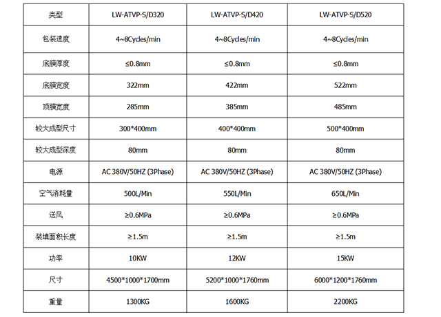 四、全自動真空包裝機設(shè)備參數(shù):