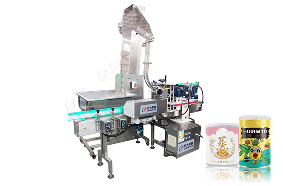 自動(dòng)上蓋壓蓋機(jī),采用直線式進(jìn)瓶、自動(dòng)落蓋、不間斷壓蓋等新工藝。在落蓋的設(shè)計(jì)中運(yùn)用的提升式落蓋裝置,避免了振蕩落蓋的噪音,且使得產(chǎn)量也有很大的提高。