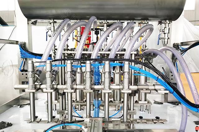 這臺設(shè)備是8頭灌裝機,一般我們的灌裝頭數(shù)量視產(chǎn)量而定,直線式的建議4~12頭,否則灌裝速度反而達不到預期。