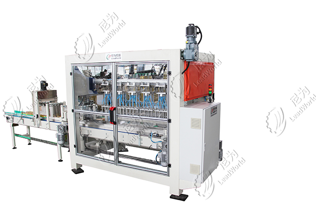 鏈輪式裝箱機(jī)主要工作方式是通過(guò)抓頭抓取設(shè)定好數(shù)量的產(chǎn)品放入箱內(nèi),抓頭有磁力吸取式,適合抓取帶磁力的產(chǎn)品,具有不傷罐的優(yōu)點(diǎn);有真空吸盤(pán)式,這種適用范圍廣,玻璃瓶、馬口鐵罐、塑料瓶等皆適用;有氣囊式,這種適合礦泉水瓶類(lèi)的小直徑產(chǎn)品,氣囊抓頭吸力較強(qiáng),更適合怕有跌落風(fēng)險(xiǎn)的玻璃瓶;還有海綿吸盤(pán)式,這種適合產(chǎn)品表面相對(duì)平整、重量較輕的袋裝產(chǎn)品裝箱。